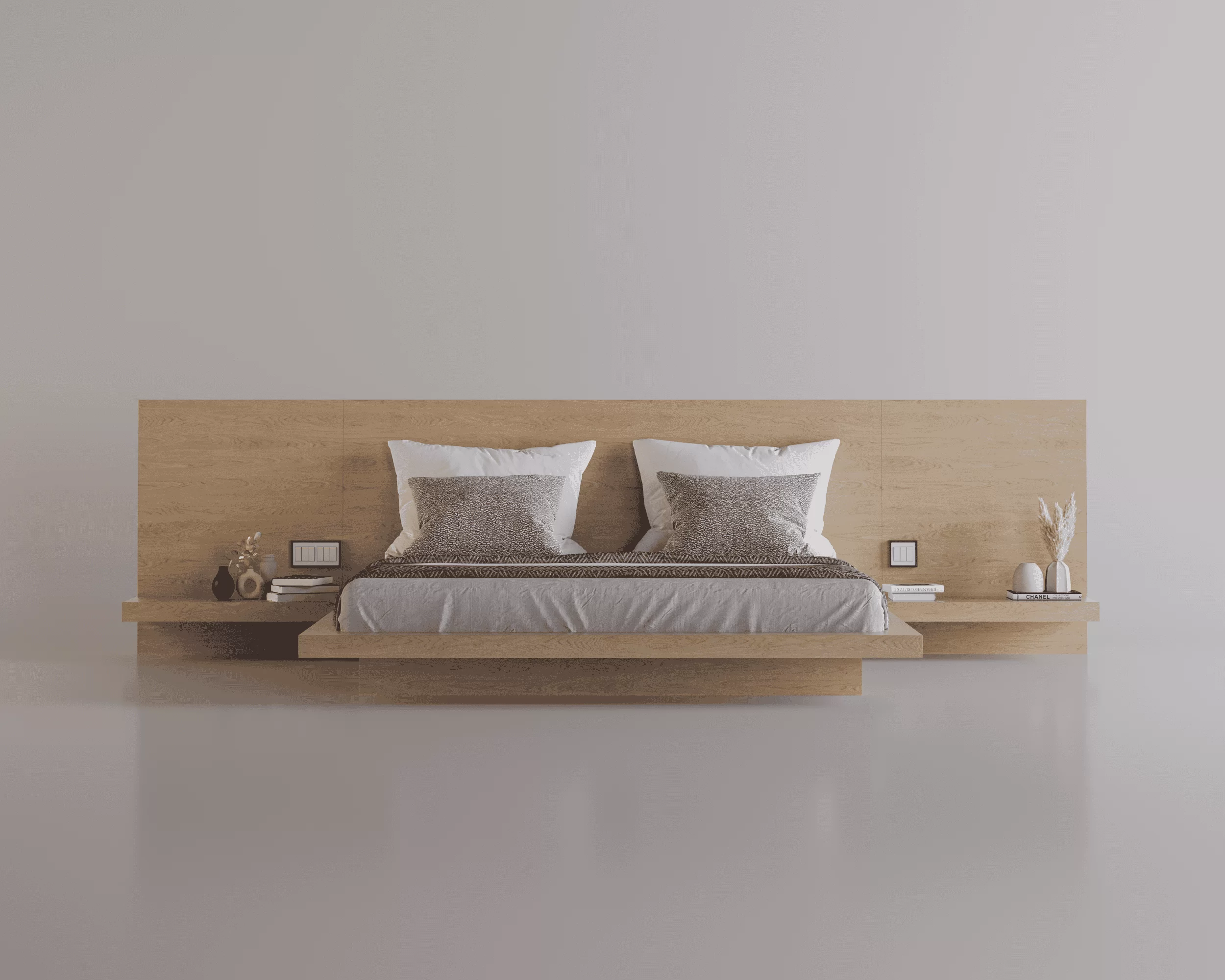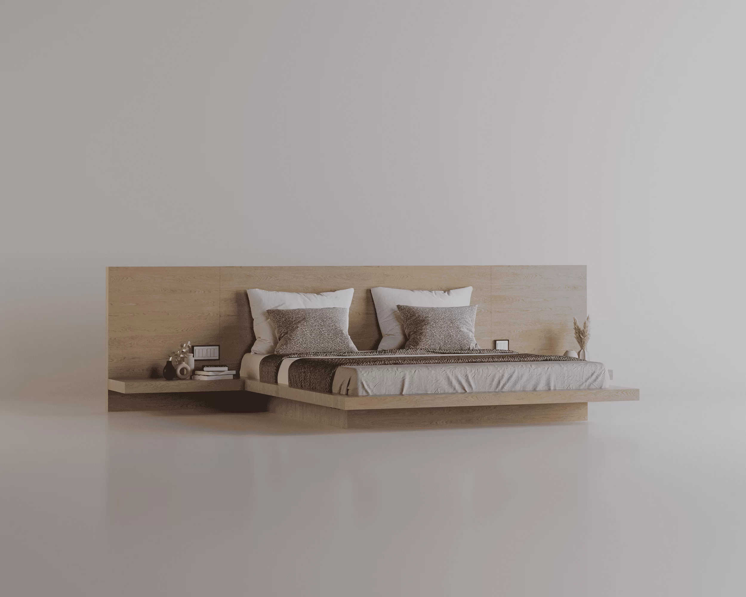 Meeting the simple and attractive lines of the Far East, Sueno invites users on a mystical journey with its fixed nightstands attached to the headboard.