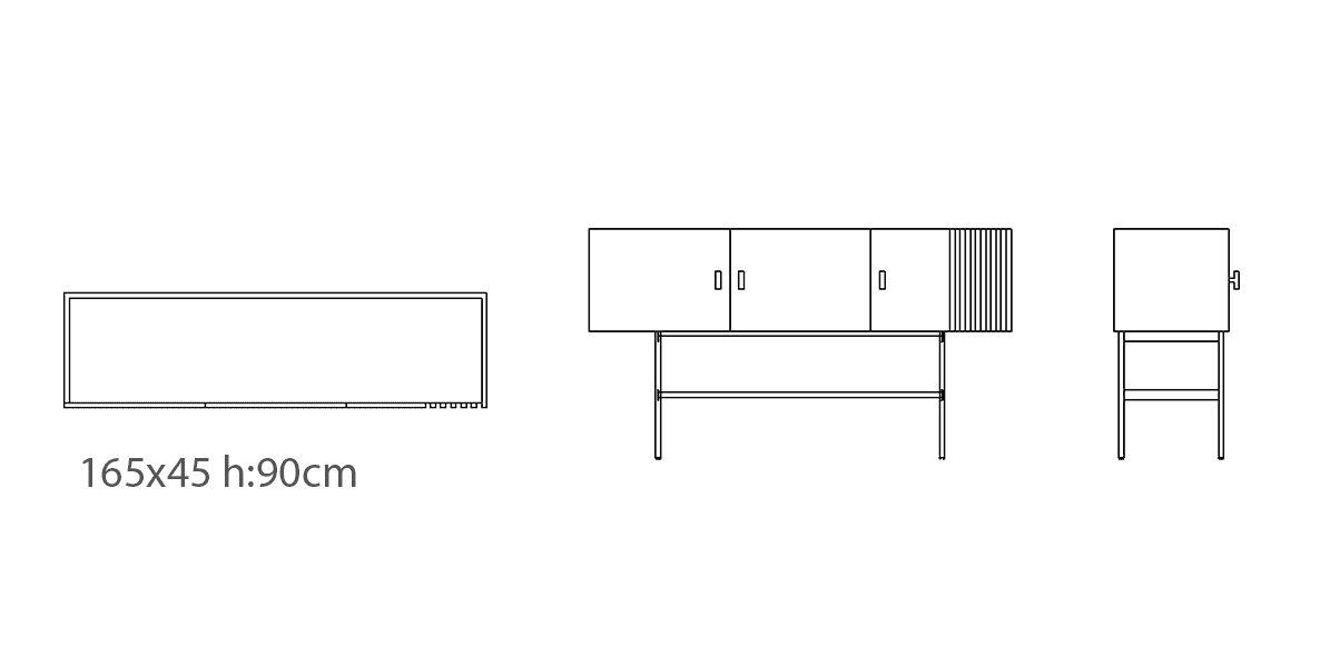 Ideal for display and storage with its slim metal legs and wooden details, the Vetro buff et.